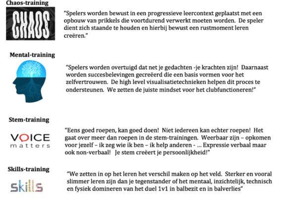 Techniektrainingen en techniekstages zijn ondertussen populaire woorden geworden in jeugdvoetballand.  Het Balbal Vista programma gaat veel verder en bespeelt een onontgonnen gebied in voetballand : hard en soft skills.  Vanuit een verbindende houding met zichzelf, medespelers en trainers krijgen de deelnemers de mogelijkheid om kennis te maken met hun eigen grenzen, maar leren ze vooral zelf hun eigen grenzen te verleggen.  Alle zones op het veld worden bespeeld maar ook de zones tussen de oren krijgen aandacht.  Vanuit een individuele context en benadering worden deelnemers ondergedompeld in een wereld waarin de persoonlijke leerdoelen centraal staan.  De resultaten van het balbalprogramma zijn niet alleen voetbaltools en -vaardigheden maar ook tools voor het leven !