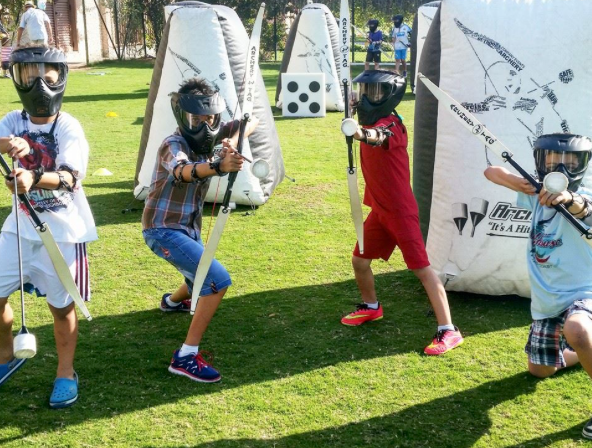 Pijl en boog zijn de rode draad van dit super leuke spel. We beschikken over 18 bogen en helmen & 54 pijlen - een combat 9v9 of minder behoort dus tot de mogelijkheden. Een ideaal spel om eens anders te bewegen en de tactische & mentale vaardigheden aan te spreken ( wie speelt aanvallend, wie speelt verdedigend, wie durft, ... ). Niet alleen voor kinderen maar ook ideaal voor jongeren en volwassenen om zich eens uit te leven.
